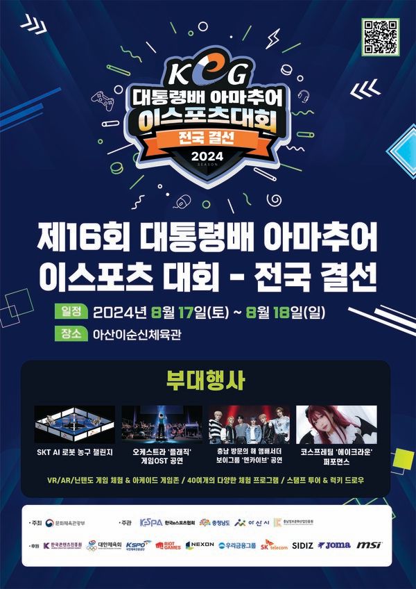 문화체육관광부가 주최하고 한국e스포츠협회, 충청남도, 아산시, 충남정보문화산업진흥원이 주관하는 제16회 대통령배 아마추어 이스포츠 대회(이하 KeG) 전국 결선이 오는 8월 17일부터 18일까지 아산시 이순신체육관에서 개최된다.