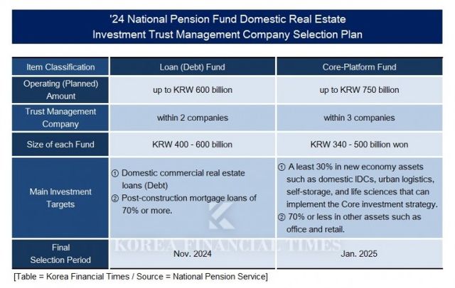 The National Pension Service plans to select and announce the management companies of the loan fund in this November and that of the core platform fund next January 2025.