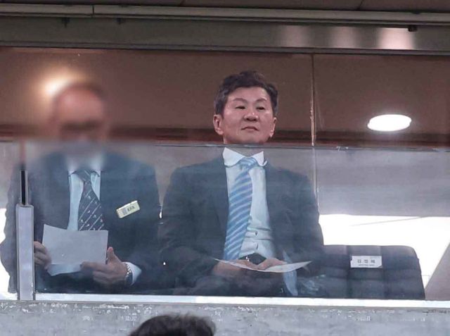 정몽규 대한축구협회장이 5일 오후 서울 마포구 서울월드컵경기장에서 열린 2026 국제축구연맹(FIFA) 북중미 월드컵 아시아 3차 예선 B조 1차전 대한민국과 팔레스타인의 경기에서 그라운드를 바라보고 있다. / 뉴스1