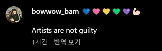 그가 올린 코멘트는 "Artists are not guilty(아티스트는 죄가 없다)"였다. 그는 다섯 개의 하트 이모티콘도 덧붙였는데 이 하트의 색들은 '뉴진스' 멤버들의 상징색으로 알려져 있어 그가 우회적으로 지지를 표한 것이 아니냐는 의견이 나오고 있다.