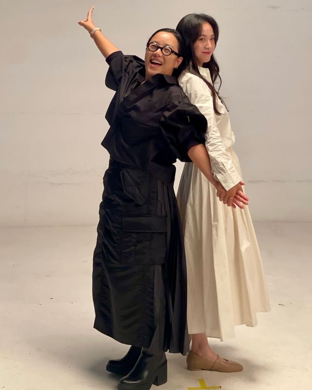 사진 속에는 화이트 롱 치마에 화이트 블라우스를 입은 탕웨이가 청초한 아름다움을 뽐내며 블랙 의상의 정샘물을 꼬옥 안아주며 친분을 과시하고 있다. 편안한 두 사람의 미소는 보는 이들까지 웃음짓게 한다.