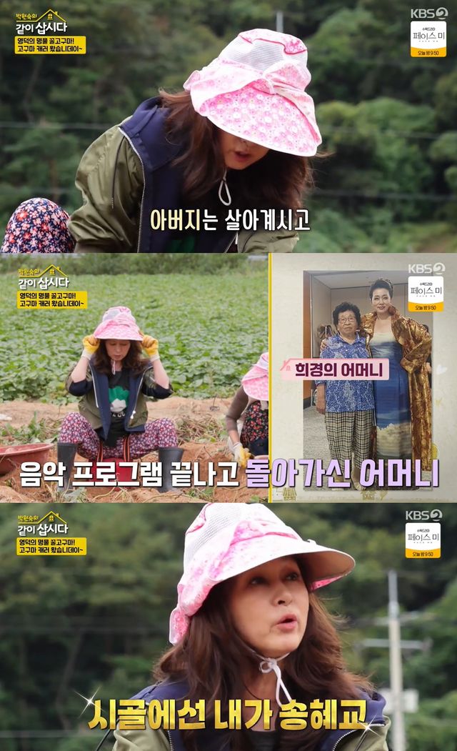 이어 문희경은 "어머니가 일일드라마를 가장 좋아하셨다. 시골에서는 제가 송혜교다. 시골 어르신들은 오히려 송혜교를 모른다. 일일드라마 나오니까 시골가면 제가 스타다"며 "그걸 어머니는 너무나 좋아하셨다. 그때 어머니 돌아가시고 아버지는 혼자 계신다. 아버지는 들리시지 않으시니까 텔레비전을 봐도 제 얼굴만 보신다"고 밝혔다.