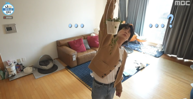 또 벽에 거는 행잉 화분은 TV 모서리에 거는 등 엉뚱한 면모를 보였다. 이어 안재현은 “식물이 잘 클 수 있는 전구가 있더라”며 스탠드 조명 전구 갈기를 시도했다.
