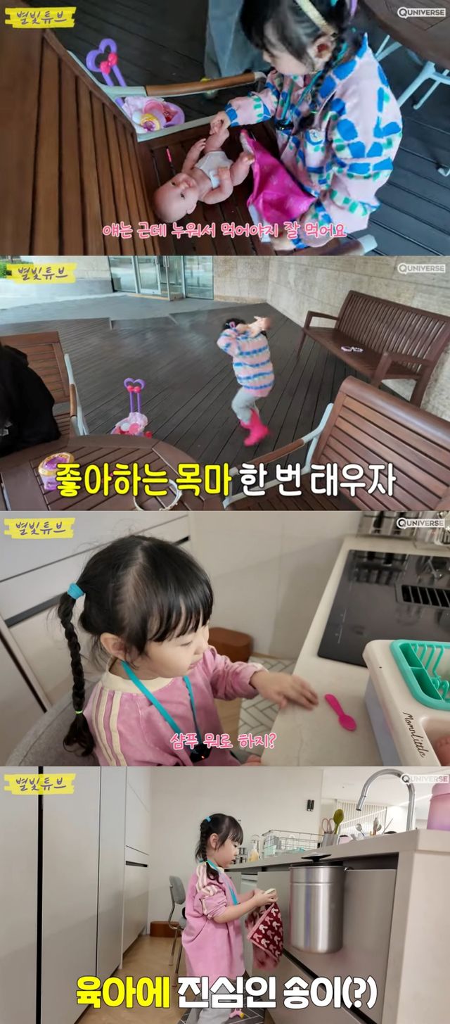 (엑스포츠뉴스 김수아 기자) 가수 하하와 별의 막내딸 송이가 육아에 진심인 모습을 보였다.