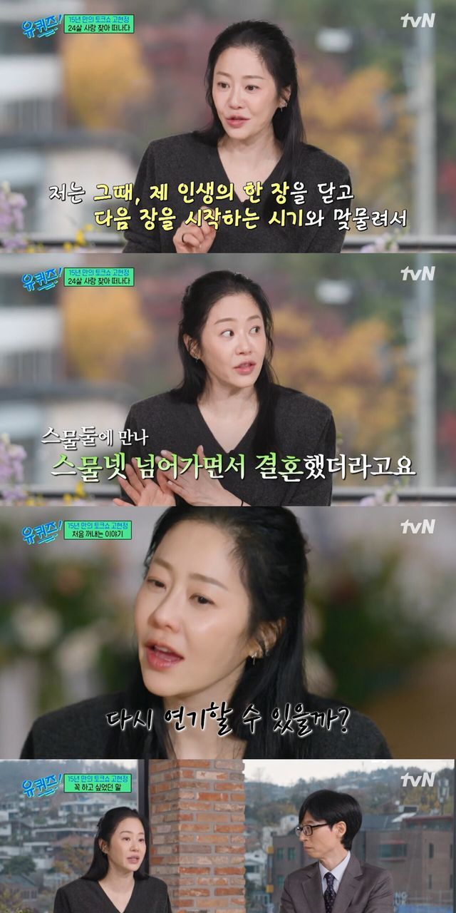 복귀 후 '봄날' '선덕여왕'을 잇따라 히트시킨 고현정은 각종 시상식을 휩쓸며 성공 가도를 달렸다. 그러는 동안에도 고현정을 둘러싼 루머, 오해 등이 계속됐다. 그런데도 고현정은 제대로 해명하지 않았다. 비로소 '유퀴즈'에서 조심스럽게 입을 열었다.