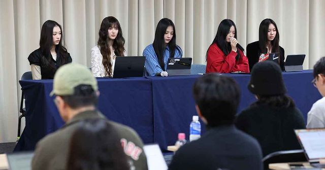 뉴진스(민지, 하니, 다니엘, 해린, 혜인)는 28일 오후 서울 강남구에서 전속계약 해지와 관련한 긴급 기자회견을 열었다.