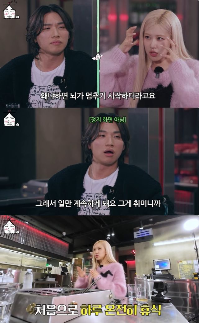 "난 일이 곧 취미"라고 입을 연 로제는 "일에만 성취감을 느끼고, 쉴 때는 아무것도 하고 싶지 않다"며 워커홀릭 면모를 드러냈다.