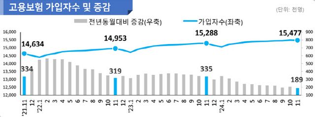 ◇11월 기준 고용보험 가입자 21년 만에 최소폭 증가