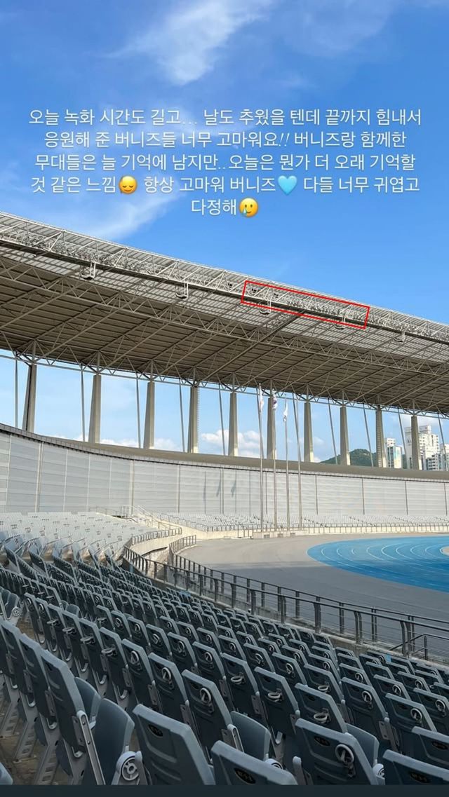 또한 공연장 지붕에는 잘 보이지 않는 흰 글씨로 “나는 나중에 마음 편하게 울 수 있을 때 울게”라는 문구를 남겨 팬들의 마음을 아프게 했다.