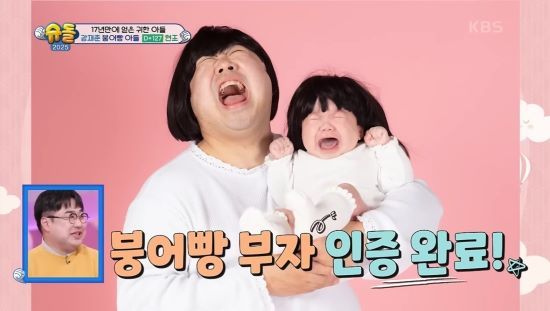 지난 1일 방영된 KBS 2TV '슈퍼맨이 돌아왔다'(슈돌)에서는 개그맨 강재준이 자신과 똑 닮은 아들과 커플룩을 입고 '100일 사진'을 촬영하는 모습이 담겼다.