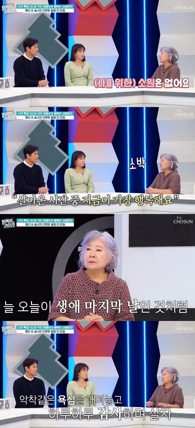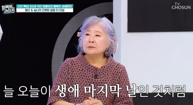 그러면서 정혜선은 "소원은 없다. 살아온 시간 중에 지금이 가장 행복하다. 매일 저녁 지금 내가 이대로 자는데 '내일 아침에 못 깨어날 수 있다' 이런 생각한다. 생에 대한 악착같은 게 없어졌다"며 하루하루에 감사함이 중요하다고 털어놓았다.