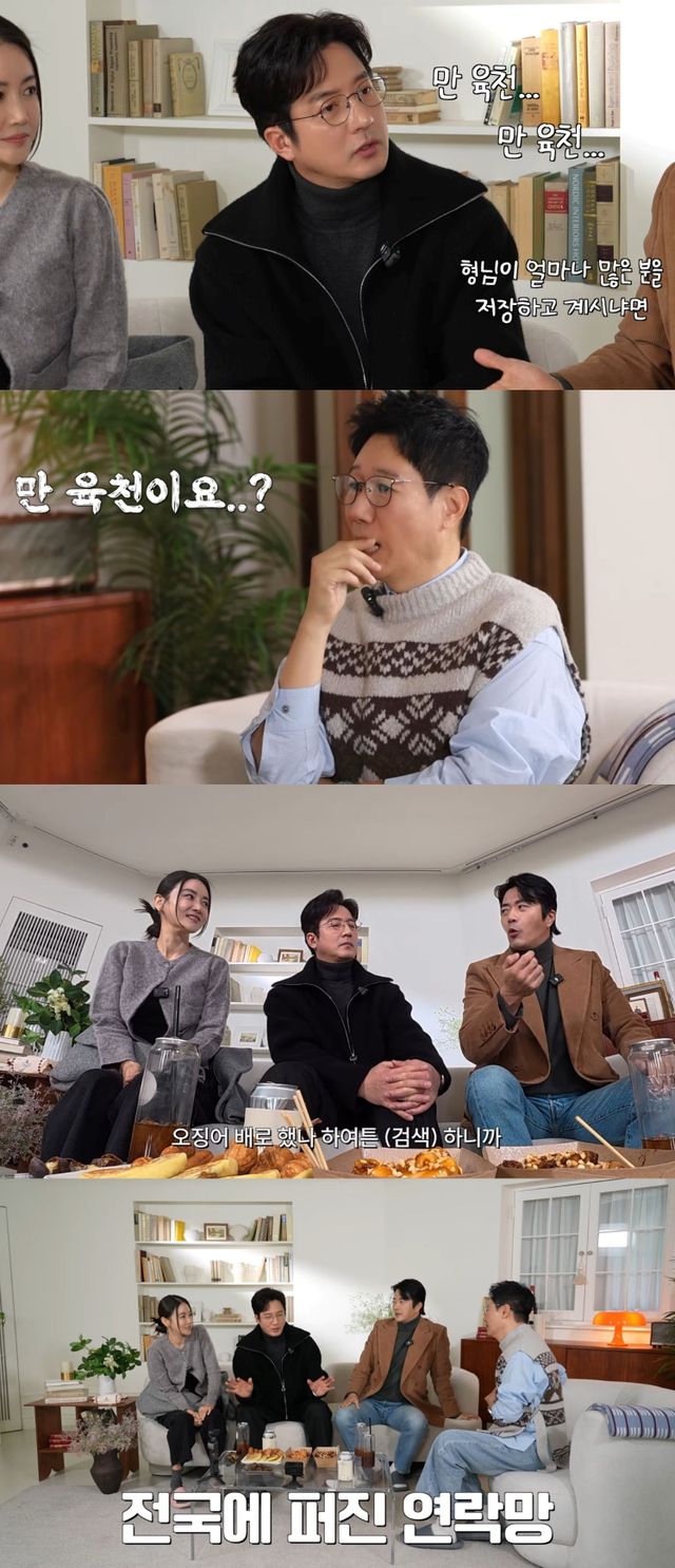 권상우는 "모르시는 분이 없다. 얼마나 많은 사람이 저장되어 있냐면, 부산 쪽에서 촬영을 하는데 어선이 필요했다. '가만히 있자' 하시더니 검색을 하더라. 그랬더니 주르륵 나왔다. 동해라 위치는 안 맞았는데 다 연결은 되더라"고 인정했다.