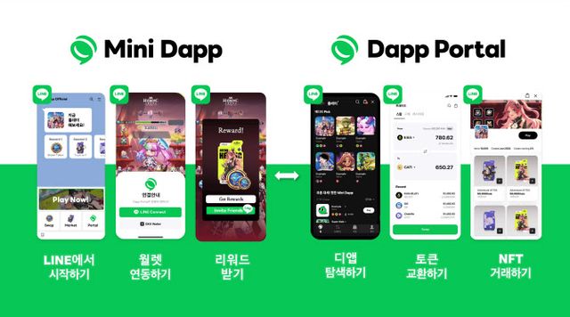 미니 디앱 이용자는 라인 메신저에 내장된 월렛을 통해 디앱의 리워드를 수령하거나, 다양한 가상 자산과 NFT를 손쉽게 교환하고 거래할 수 있다. 디앱 포털의 사용 가이드는 미디엄 채널에서 확인할 수 있다.