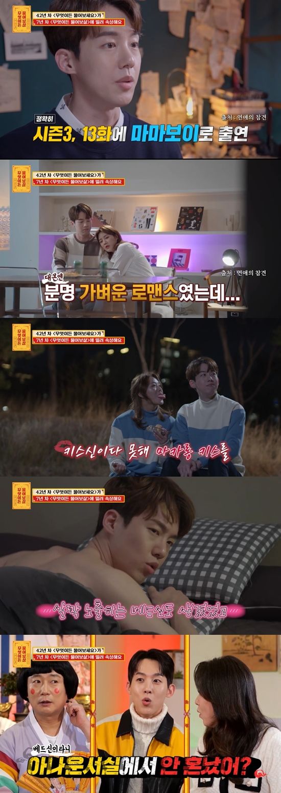 그는 "그게 괜찮았는지 침대 위에서도 처음엔 알콩달콩 연기였는데, 살짝 노출을 해볼까 하셔서 베드신을 찍었다"며 "지상파 아나운서 중 최초로 베드신을 찍었다. 그래서 그 이후에 아나운서실이 발칵 뒤집혀서 혼나기도 하고, 그 뒤에 여자 아나운서가 캐스팅이 되어있었는데 캔슬이 되기도 했다"고 비하인드를 전했다.