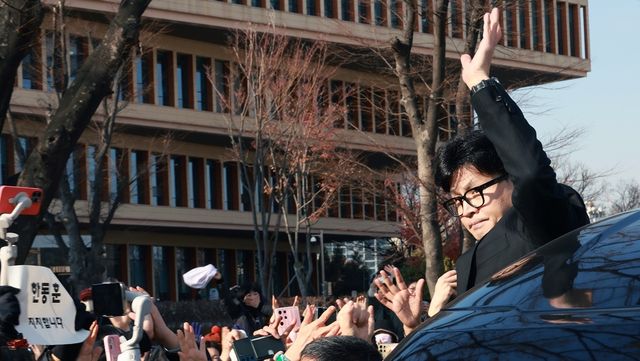 지지자들 향해 인사하는 한동훈 전 국민의힘 대표 / 뉴스1