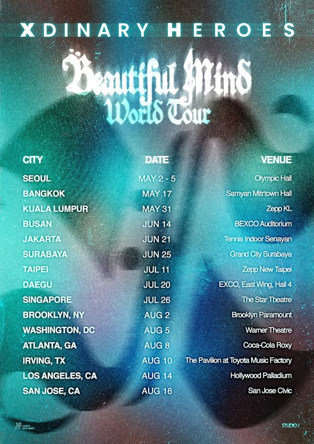 지난 24일 새 앨범 ‘Beautiful Mind’(뷰티풀 마인드)와 타이틀곡 ‘Beautiful Life’(뷰티풀 라이프)를 발매하고 컴백한 엑스디너리 히어로즈. 이들은 25일 0시 공식 SNS 채널을 통해 새 월드투어 ‘Xdinary Heroes World Tour’ 포스터를 공개했다.