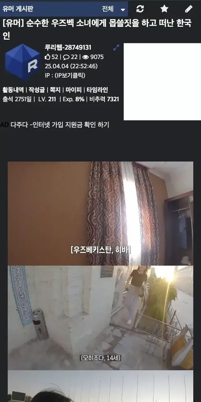 순수한 우즈벸 소녀에게 몹쓸 짓을 하고 떠난 한국,,