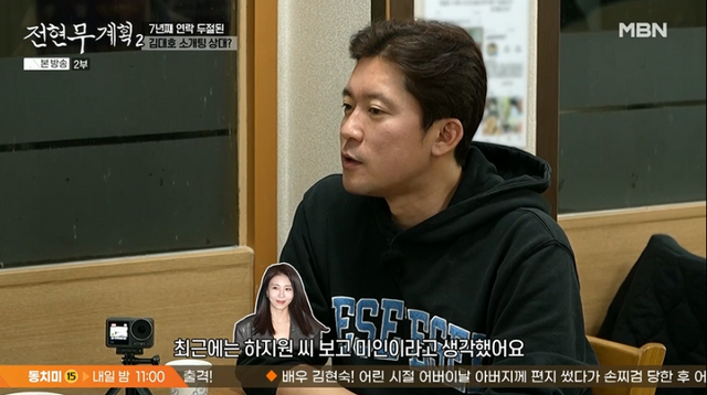 외적 이상형으로 김대호는 “최근에는 하지원 씨 보고 미인이라고 생각했다”고 말했다. 최근 두 사람은 교양 여행 프로그램 ‘마사지 로드’에서 함께 출연했다.