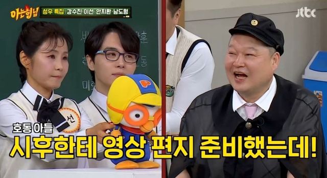 강호동은 “너무 좋아할 것 같다”며 기대의 눈빛을 보냈다. 이선은 준비한 뽀로로 인형을 교단에 올려두고 뽀로로 목소리로 “나 뽀로로가 이렇게 유명한 월드스타가 된 건 다 시후 형이 어렸을 때 많이 많이 사랑해줘서 그런 거야. 정말 고마웠어 시후 형”이라며 감동적인 메시지를 전했다.