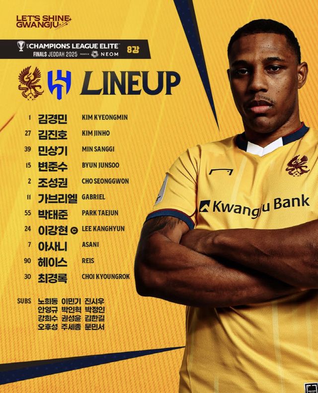 광주는 26일 오전 1시 30분(한국시간) 사우디 제다의 킹 압둘라 스포츠 시티 스타디움에서 알힐랄을 상대로 2024~25 아시아축구연맹(AFC) 챔피언스리그 엘리트(ACLE) 8강전을 치른다.