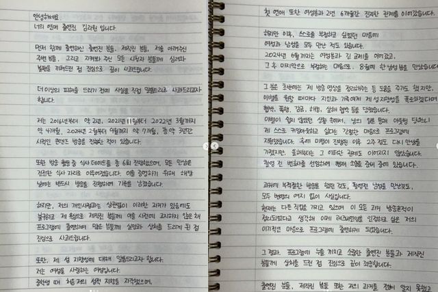 또한 "스스로를 부정하고 싶었던 마음에 여성과 남성을 모두 만난 적도 있다"며 "2024년 6월까지는 여성분과 긴 교제를 이어갔고, 그 후 마지막으로 부정하는 마음으로, 8월에 한 남성분을 만났다"고 고백했다.