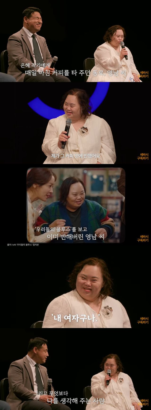 이날 두 사람의 첫 만남에 관해 묻는 질문에 정은혜는 "2024년에 (일터에) 오빠가 들어왔다"며 현재 근무 중인 '권리중심 중증장애인 맞춤형 공공일자리 일터'에서 남편을 만났다고 밝혔다.