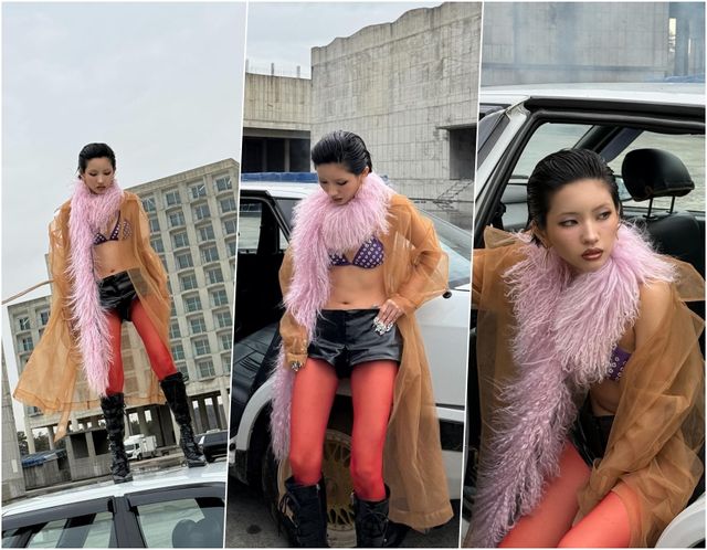 사진 속 전소연은 올백 헤어 스타일을 한 뒤 짙은 스모키 메이크업으로 강렬한 인상을 완성했다. 여기에 그는 브라톱과 강렬한 레드 컬러의 시스루 스타킹, 핫팬츠를 매치하는 과감한 패션으로 눈길을 끌었다.