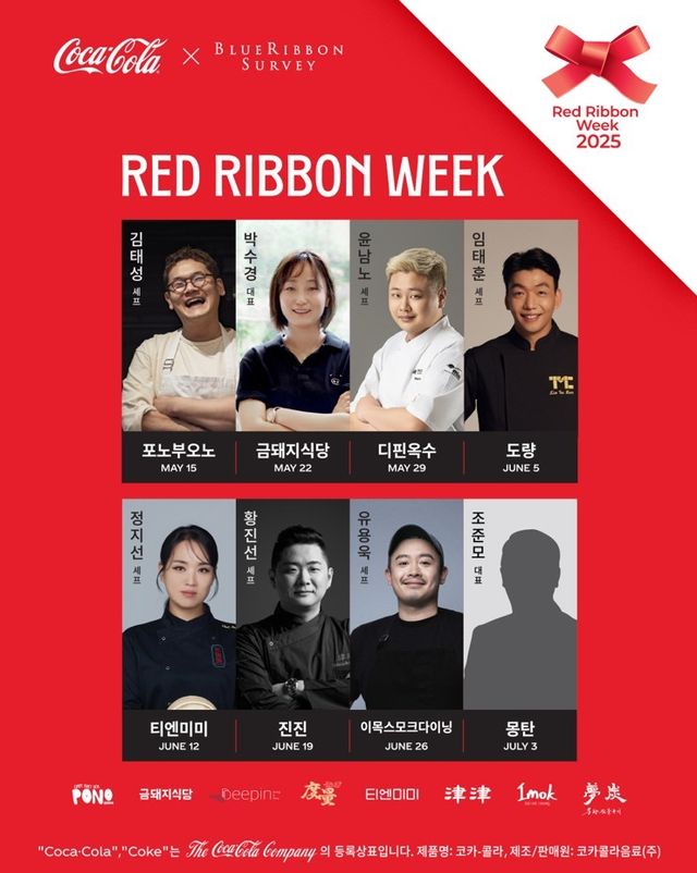 브랜드 관계자는 “‘레드리본 위크 2025’는 한 끼 식사를 더욱 특별하게 만들어주는 브랜드의 진가를 유명 레드리본 레스토랑에서 경험할 수 있는 특별한 기회가 될 것”이라며 “오랜 기간 뜨거운 인기를 구가하고 있는 맛집 8곳에서, 맛있는 음식에 코카-콜라 한 잔이 더해질 때 완성되는 미식 경험을 직접 즐기시고 특별한 추억도 남겨보시길 바란다”고 말했다.