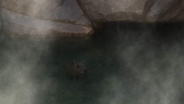 기사 내용을 바탕으로 AI가 생성한 자료사진. 온천욕 즐기는 카피바라.
