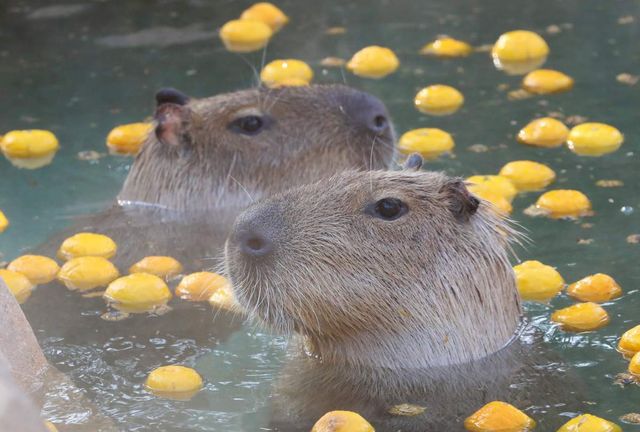 '따뜻한 온천이 좋아' 온천욕 즐기는 카피바라들. 자료사진. / 뉴스1