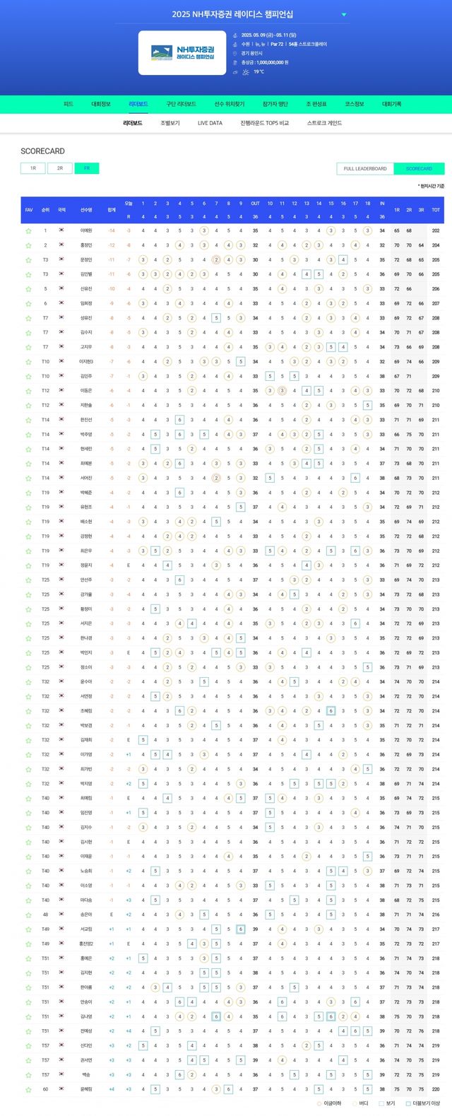 ▲NH투자증권 레이디스 챔피언십 최종3라운드 순위