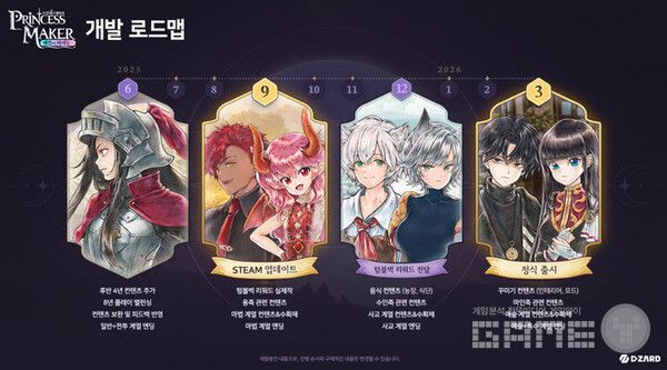 ‘프린세스 메이커: 예언의 아이들’은 국내 게임사 다자드가 정식 라이선스 계약을 체결한 후 자체적으로 개발하는 게임이다. 이 게임은 올 9월 출시를 목표로 했으나 2026년으로 연기됐다. 디자드는 공식 블로그를 통해 현재 인력으로 일정 내에 만족스러운 완성도를 갖춘 게임을 선보이기 어렵다고 판단하여 출시일을 연기하게 됐다고 밝혔다. 대신 연기에 대한 우려를 해소하고 ‘프린세스 메이커: 예언의 아이들’이 더 좋은 방향으로 나아가기 위한 방안으로 5월말 스팀으로 얼리 액세스 출시를 준비 중이라고 전했다.