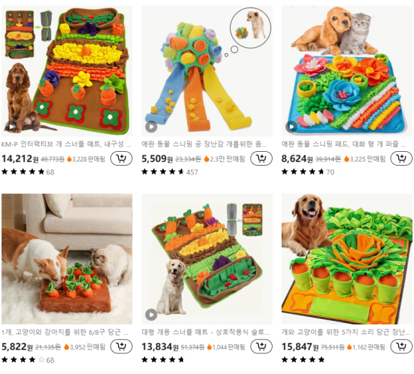 (ex. 풀숲같은 주름 매트, 간식 숨기기 매트)