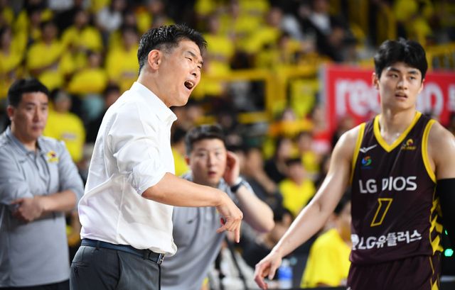 전열을 정비한 3쿼터, 이번에는 반대 상황이 나왔다. SK의 3점슛은 림을 연거푸 외면했다. LG는 유기상의 중거리슛, 정인덕의 코너 3점슛으로 마침내 침묵을 끊었다. 전희철 감독은 3쿼터 2분 5초 뒤 타임아웃을 외쳐야 했다.
