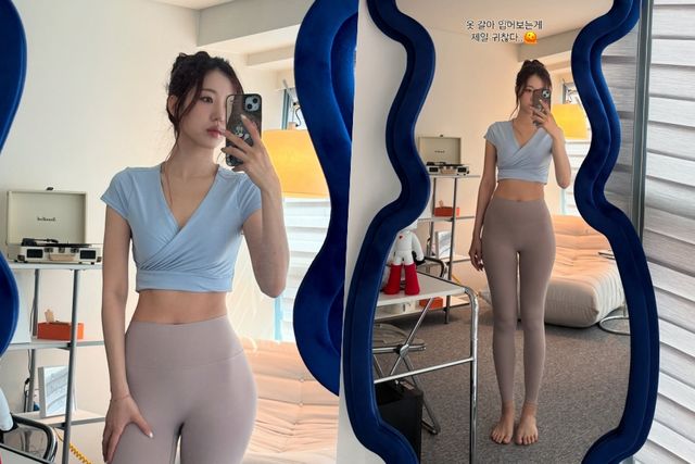 크롭톱에 레깅스를 입고 있는 송다혜는 운동하러 가려는 듯 거울 셀카를 찍고 있는 모습이다. 잘록한 허리에 풍만한 힙라인으로 콜라병 자태를 자랑한 송다혜는 쭉 뻗은 11자 다리 각선미까지 드러내 시선을 강탈했다.