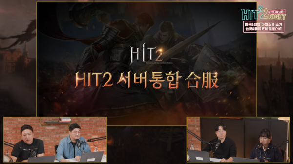 넥슨의 모바일 MMORPG ‘히트2’가 16일 저녁 개발진 소통 라이브 방송 ‘HIT2NIGHT’를 진행, 게임의 향후 주요 계획을 알렸다. 한국과 대만 지역 합동 방송으로 진행된 이번 라이브에서는 한국과 대만 서버의 통합 계획부터 대형 신규 콘텐츠 등 굵직한 소식들이 다수 전해졌다.