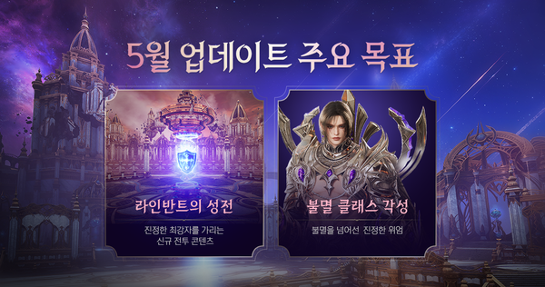 먼저, 오는 5월 28일 업데이트 예정인 신규 콘텐츠 ‘라인반트의 성전’의 상세한 정보가 소개됐다. ‘라인반트의 성전’은 4주간 각 서버가 하나의 팀이 되어 경쟁을 펼치는 인터 콘텐츠의 일종이다. 팀(서버)마다 ‘라인반트의 성전’ 콘텐츠 핵심인 점령전에 참여할 3개 길드를 선정하는 과정을 거치며, ‘라인반트의 성전’에 참가하는 대표 길드는 콘텐츠 오픈 주간 인테라 성 성주 길드로 결정되며, 2개의 서브 길드는 길드 구성원의 PvE 순위 합산이 가장 높은 순으로 결정된다.