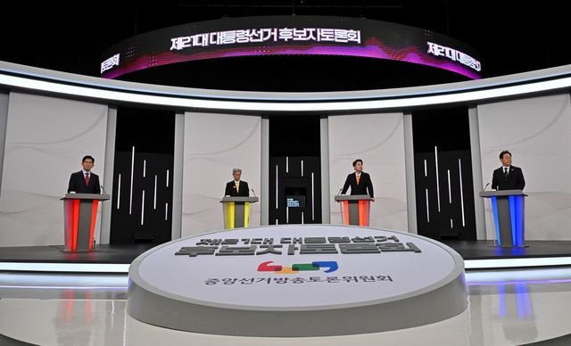 이날 토론회에는 이재명 더불어민주당 후보, 김문수 국민의힘 후보, 이준석 개혁신당 후보, 권영국 민주노동당 후보가 참석했다.