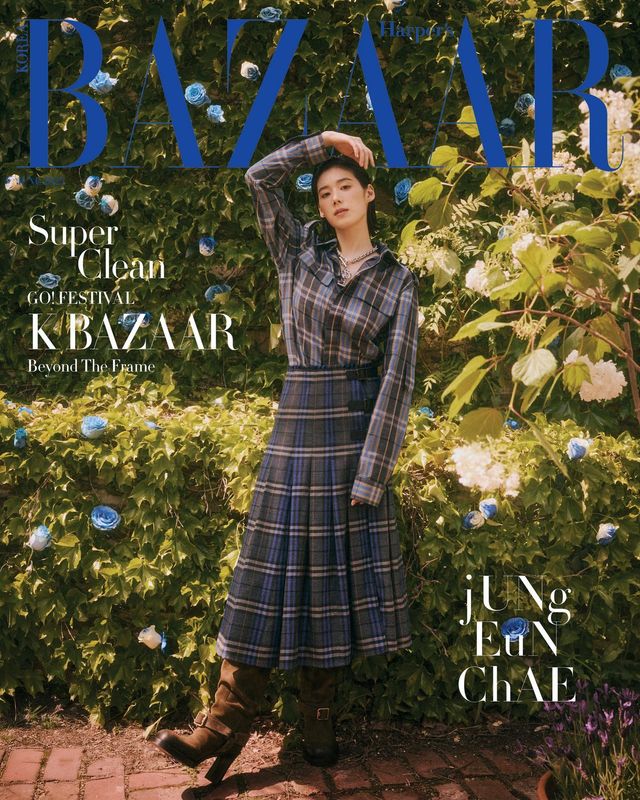 만개한 꽃과 식물이 생동하는 정원에서 ‘바자’ 6월호 커버 촬영이 이루어진 며칠 뒤, 영국의 일러스트레이터 및 회화 작가 헬렌 벌록은 배우 정은채의 사진을 매개삼아 ‘바자’의 커버 시안을 섬세한 터치가 담긴 아트워크와 함께 전달했다. 마치 ‘하이그로브x버버리’ 컬렉션 캠페인 속 다양한 이미지들이 작가의 작품을 입고 한껏 입체적이고 자유로운 분위기를 연출한 것처럼.