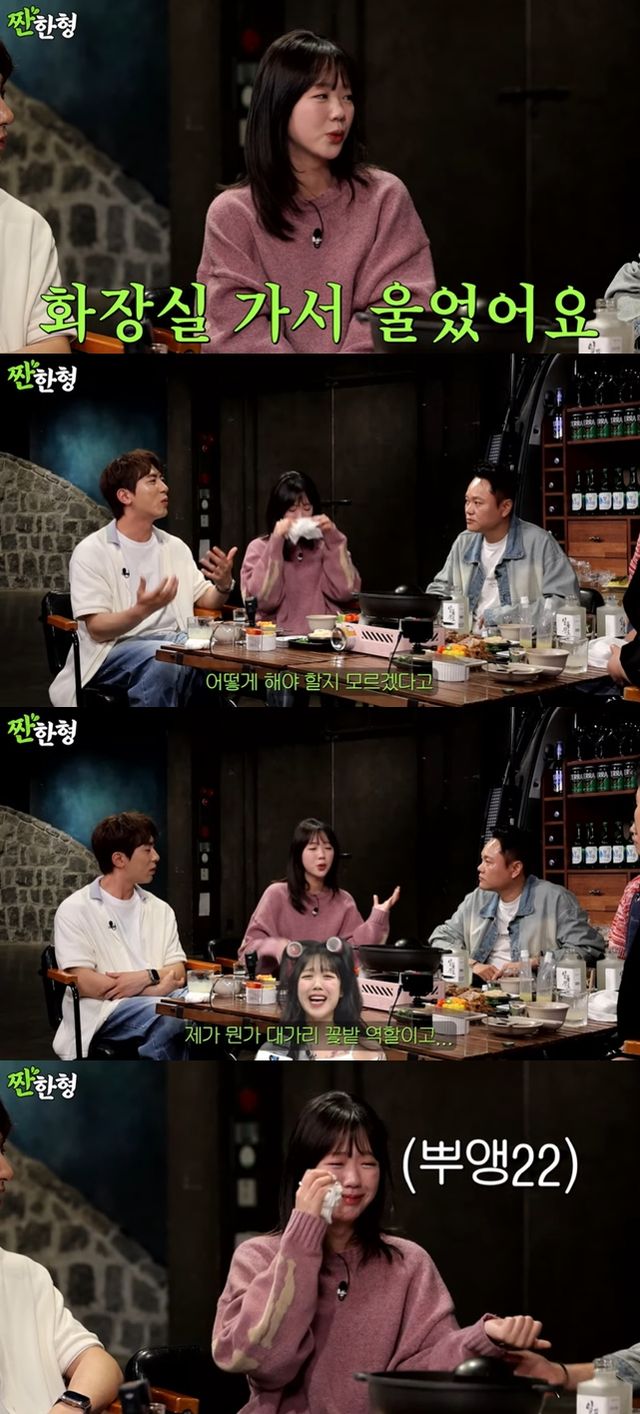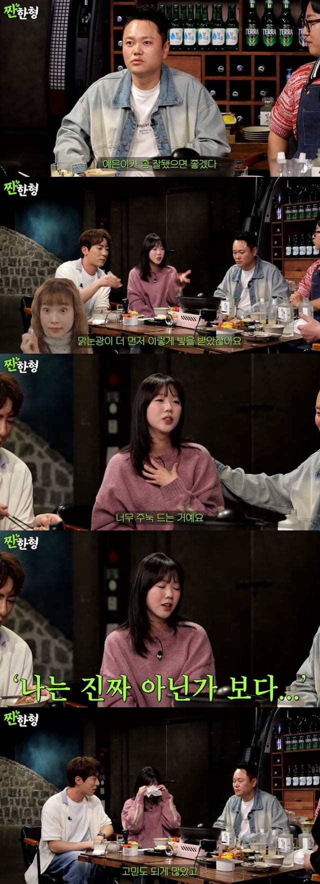 김원훈은 "예은이도 되게 그런 거에 대해서 고민도 많이 있고, 어떻게 해야 될지 모르겠다고 얘기를 많이 했던 상황을 안다"라고 말했다. 이에 지예은은 "SNL 코리아 시즌3 할 때 매번 화장실 가서 울었다. 제가 대가리 꽃밭 역이고 밝은 역이니까 그(우는) 모습을 보이고 싶지 않았다"라고 털어놨다.