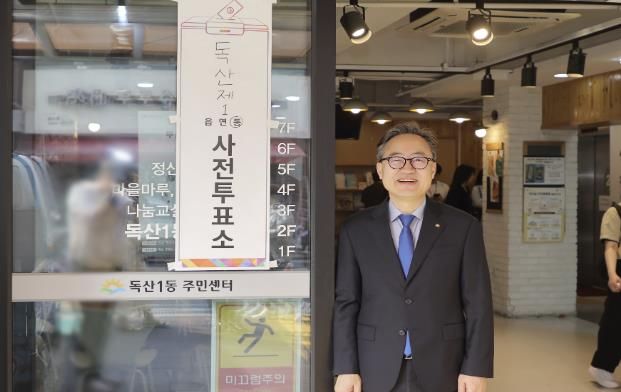 | ▲ 유성훈 금천구청장이 독산1동 사전투표소에서 투표를 마쳤다 |