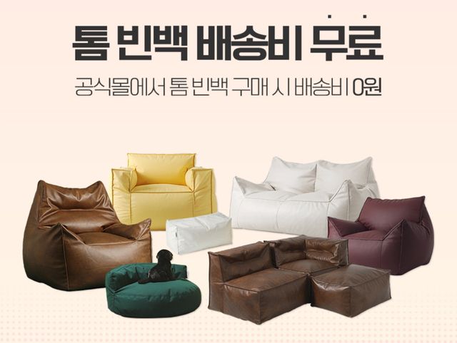 특히 베스트셀러인 톰 빈백 구매 시에는 배송비 또한 무료로 제공되니 보다 알뜰한 쇼핑을 위해서라면 공식몰 회원이 누릴 수 있는 혜택들을 꼼꼼히 챙겨보도록 하자.