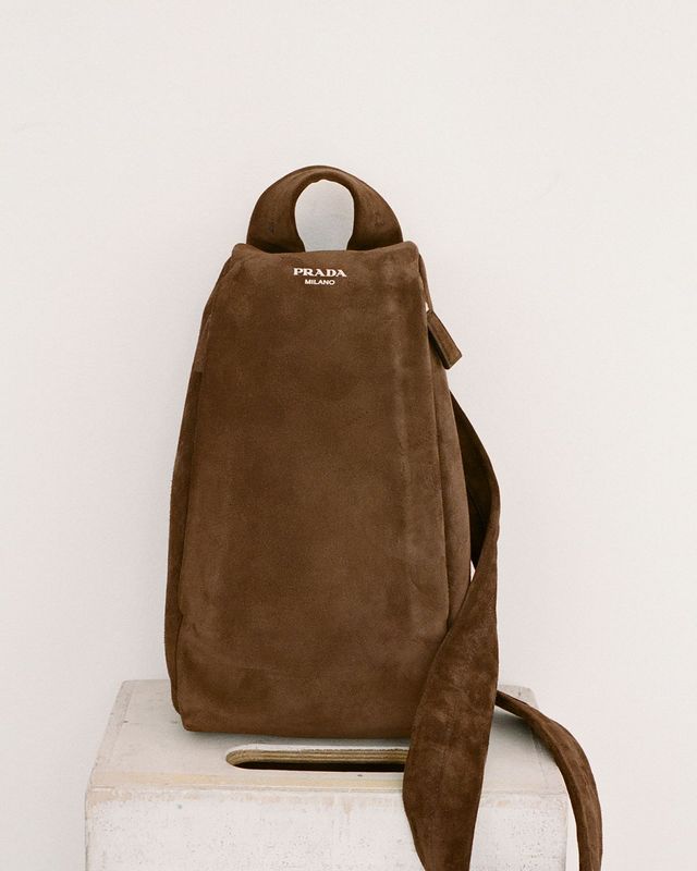 스웨이드 백팩은 Prada.