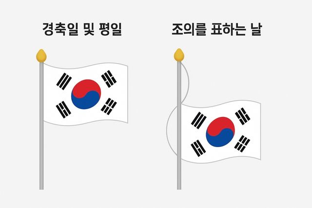 일반적으로 태극기는 광복절을 비롯해 3.1절, 제헌절, 개천절, 한글날의 5대 국경일과, 국군의 날 및 정부 지정일에 게양한다. 이때는 일반적으로 깃봉과 깃면의 사이를 띄우지 않고 단다.
