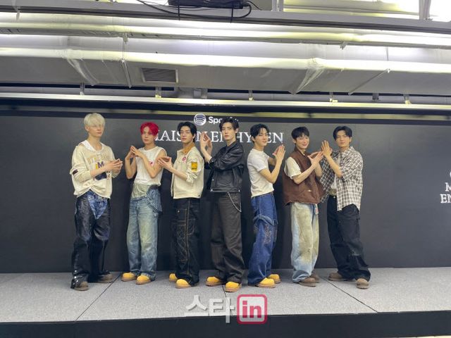 엔하이픈 성훈은 7일 서울 영등포구 여의도 벙커(서울시립미술관·SeMA)에서 열린 스포티파이·엔하이픈 팝업 ‘메종 엔하이픈’ 미디어 프레젠테이션에서 신보 발매 첫날 189만 장의 판매고를 올린 점에 대해 “잘 되고 있어 너무 좋다”고 웃어보이며 “무엇보다 엔진(팬덤명)분들이 좋아해 주고 있어서 뿌듯하고 감사하다”고 팬들에게 고마움을 표했다.