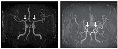 (사진 왼쪽부터 정상인 및 모야모야병 환자의 뇌혈관)