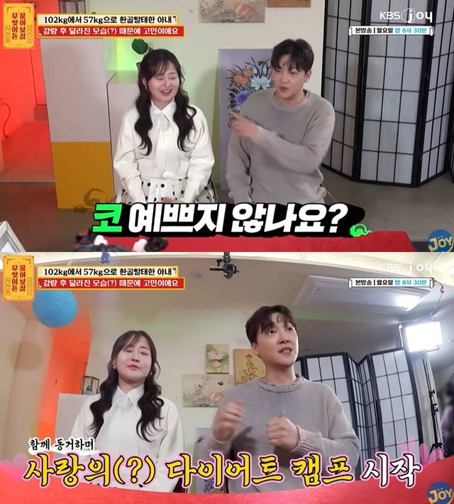 남편이 아내에게 "가슴이 4개야?", "가슴 살 접힌다", "감히 네가 날 좋아해?" 등과 같은 말을 이어가 MC들의 화를 불렀다. 아내는 과거 100kg에 육박했지만, 45kg를 감량해 52kg를 유지 중이다.