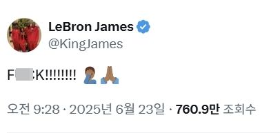 강렬한 한마디를 남긴 NBA 스타는 르브론 제임스(LA 레이커스)였다. 그는 자신의 X 계정에 F로 시작하는 욕설과 느낌표 여러 개, 그리고 간절히 기도하는 손 모양 이모지를 남겼다.