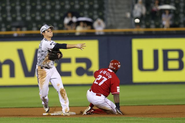 반면 두산은 4회말 선두 임종성이 번트안타로 출루, 김민석까지 내야안타로 나가면서 무사 1·2루 찬스를 만들었다. 2루수 땅볼로 출루한 정수빈이 2루 도루에 성공, 오명진 몸에 맞는 공으로 다시 만루 찬스를 잡은 뒤 양의지의 적시타에 2점을 추가하며 5-0으로 달아났다.