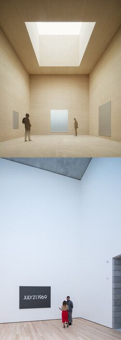 온 카와라의 '문 랜딩(Moon Landing, 1969)'이 전시된 방은 뮤지엄의 중간에 위치하며 가장 높은 층고와 천장 전체가 유리로 되어 최대치의 빛이 들어오게 디자인하고 12개의 전시실 중 유일하게 목재 바닥을 깔고 그 밑을 1m 두께의 참숯으로 채워 방안의 습기를 조절하고 동시에 숯 냄새로 인한 차별화는 관객들로 하여금 미세한 공기 차이를 느끼게 하고 그림 위의 하늘을 올려다보며 마치 아폴로 11호 우주 비행사들이 우주를 보고 느꼈을 법한 기분을 줄 수 있도록 설계되었다.